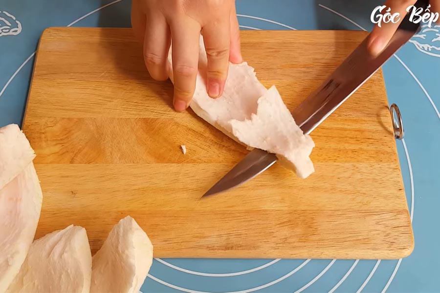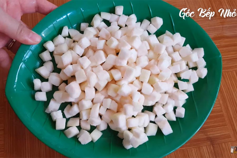 - Cắt cùi bưởi nhỏ thành các hạt nhỏ vừa ăn.