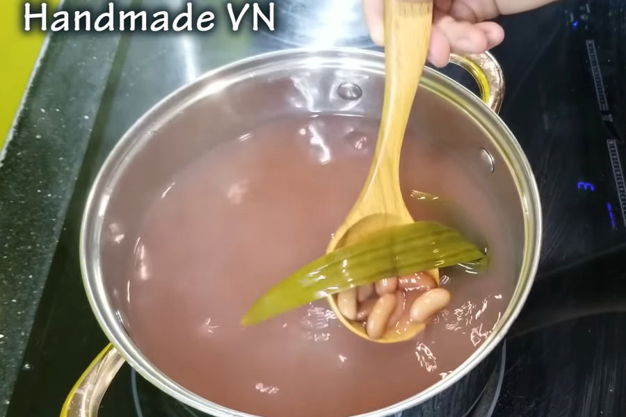 - Thử hạt đậu đỏ cảm thấy chín mềm là đạt.