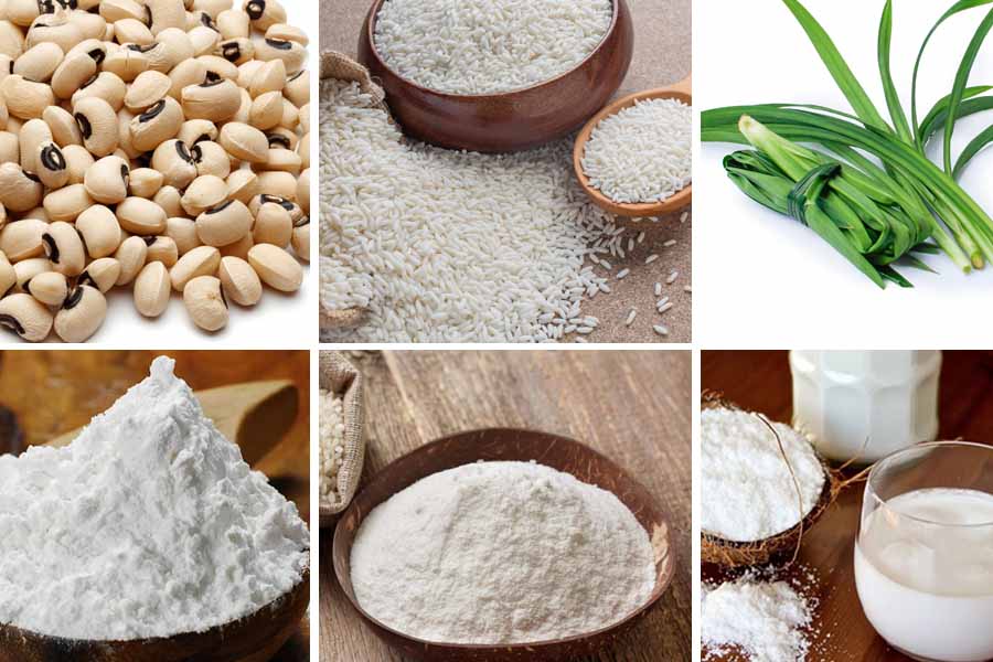 - Hòa tan 2 thìa cà phê bột năng, 2 thìa cà phê bột gạo với ít nước cốt dừa.