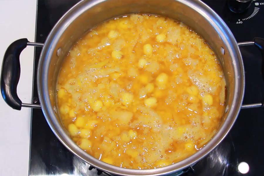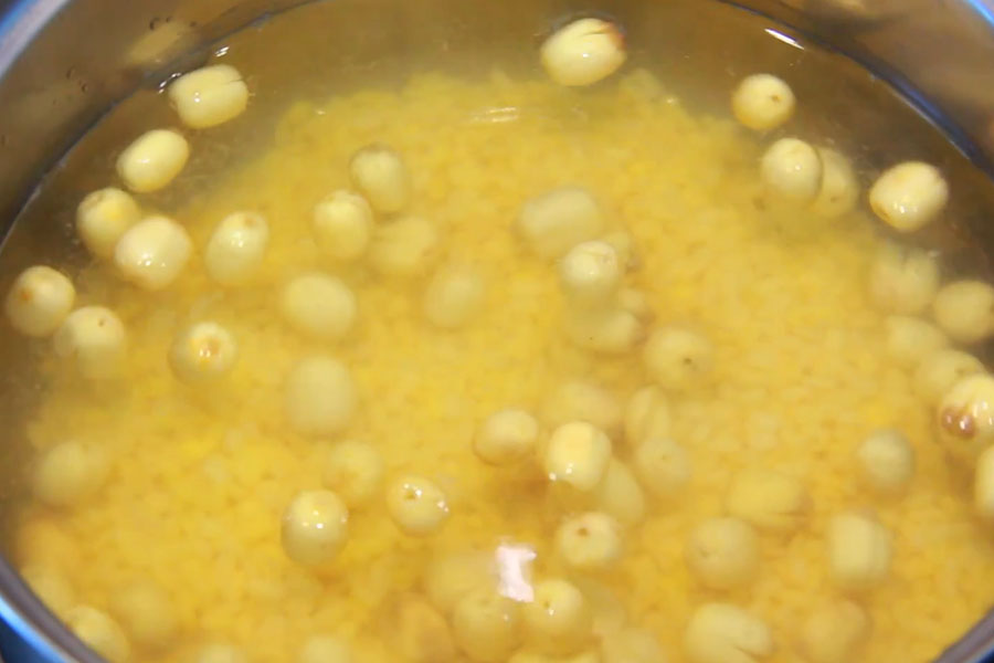 - Nấu đậu xanh và hạt sen với mức lửa vừa trong khoảng 20-30 phút.