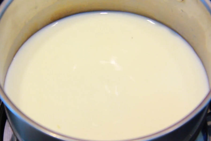 - Đun và khuấy đều tay cho đến khi nước cốt dừa sôi và sánh đặc lại thì bạn tắt bếp.