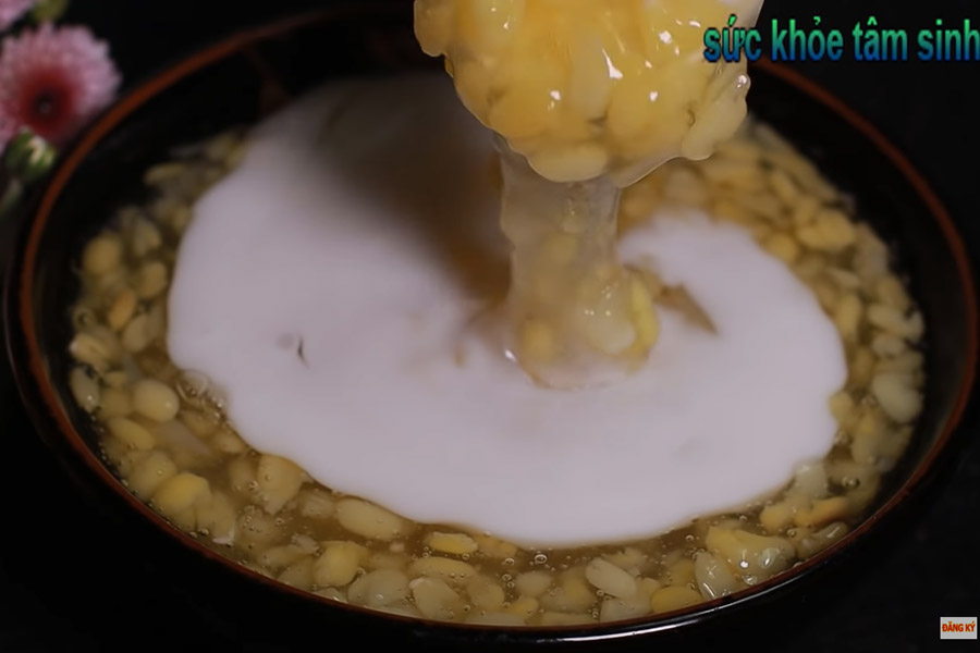 - Múc chè vào chén sau đó cho thêm 1 ít nước cốt dừa lên là bạn có thể thưởng thức một món chè thơm ngon hấp dẫn rồi đấy.