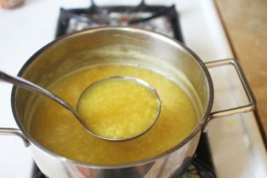 - Chắt bỏ nước. Tiếp tục nấu đậu với lửa nhỏ khoảng thêm 15 phút nữa rồi tắt bếp.