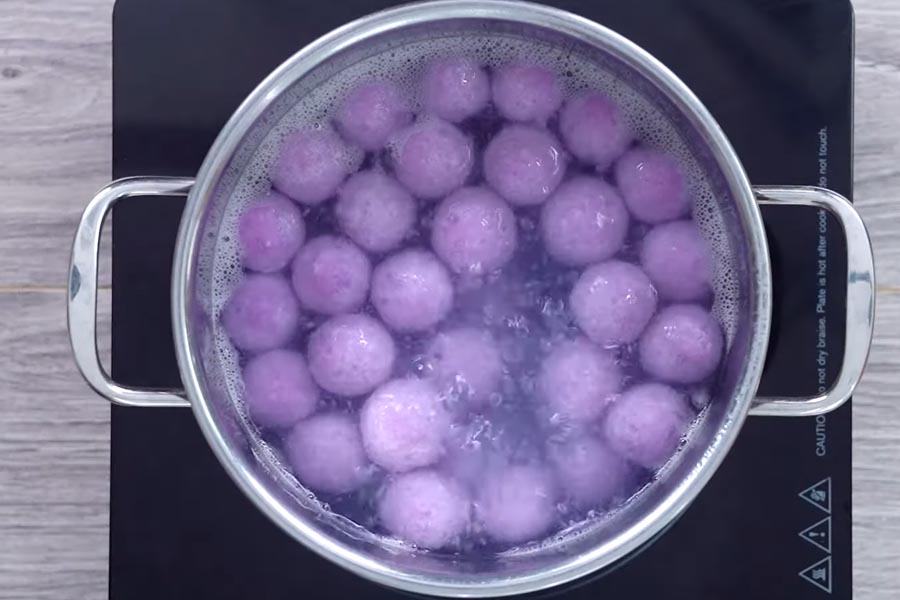 - Cho 2 lít nước vào nồi đun sôi, đến khi nước sôi thì bạn cho các viên bột vào luộc.
