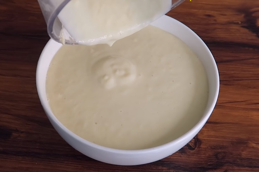 - Xay nhuyễn sau đó đổ ra tô rồi dùng màng bọc thực phẩm bọc lại để ngăn mát tủ lạnh.