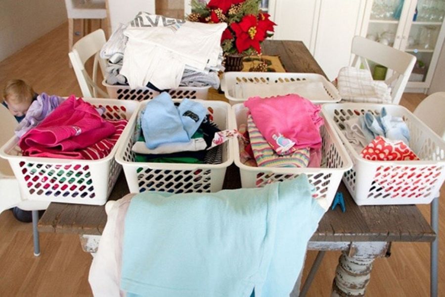 - Chia đồ theo màu sắc vào từng giỏ riêng biệt, không giặt chung quần áo trắng và quần áo màu.