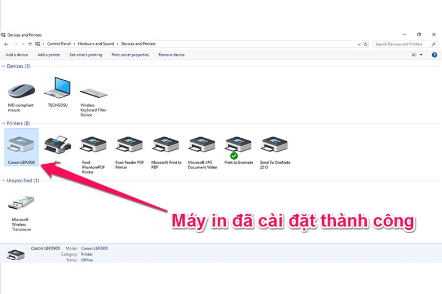 Như vậy, bạn đã kết nối thành công máy in và máy chủ, đồng thời thực hiện xong quy trình cài đặt máy in cơ bản.