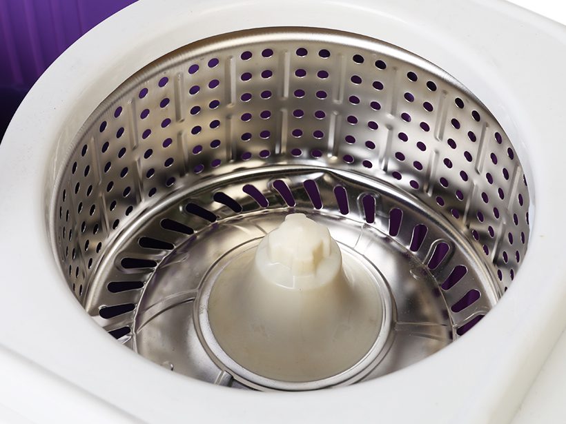 Trong thùng chứa nước sẽ có 2 bộ phận chính: là thùng giặt và lồng vắt. Thùng giặt là bộ phận chứa nước để nhúng cây lau. Lồng vắt có nhiệm vụ làm khô bông lau trước khi lau nhà.