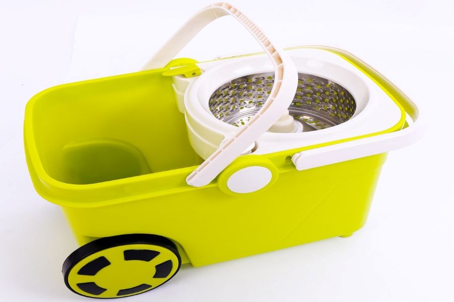 Thùng đựng nước khi lau nhà, thường làm bằng nhựa để dễ dàng cho việc di chuyển thùng.