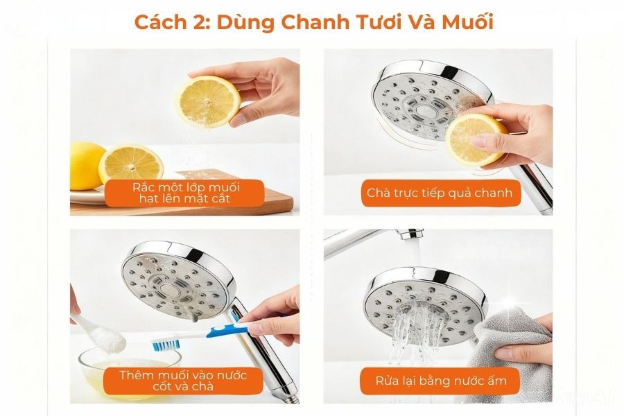 Lưu ý: Phương pháp này chỉ hiệu quả với cặn mới hình thành trong vài ngày đến 1-2 tuần. Với cặn “hóa thạch” lâu năm, bạn cần sử dụng giấm hoặc hóa chất chuyên dụng.