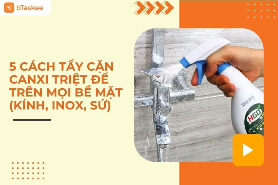 Từ những cách tẩy cặn canxi trên kính do bTaskee chia sẻ, bài viết này mở rộng thành 5 công thức tẩy cặn canxi cho mọi bề mặt: kính, inox, sứ men, gạch nền và cả ấm siêu tốc. Mỗi công thức đều có tỷ lệ pha, thời gian ngâm theo độ dày cặn và lưu ý an toàn cho từng vật liệu.
