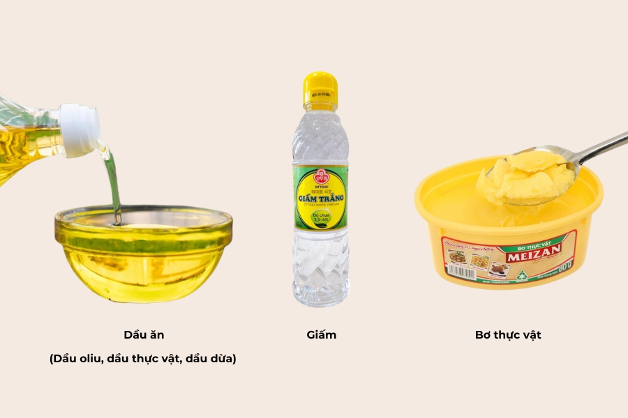 - Thấm dầu ăn lên miếng bông gòn hoặc khăn mềm
