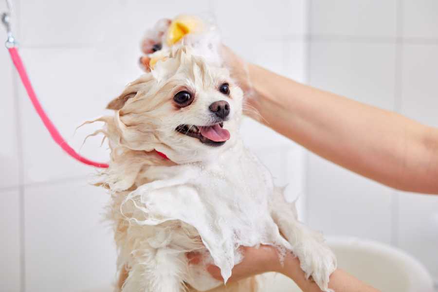 - Bước 6: Sau đó tẩy sạch hoàn toàn lớp keo và lớp dầu bằng cách cho thú cưng tắm nước ấm.