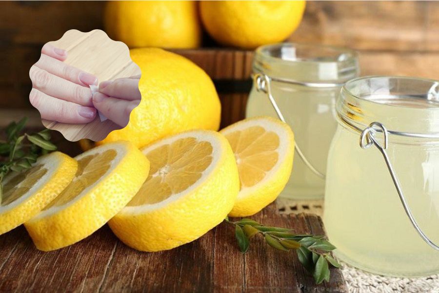 Nước cốt chanh chứa hàm lượng axit tự nhiên cao.giúp loại bỏ lướp sơn móng tay không mong muốn. Mặt khác, lượng vitamin C dồi dào trong chanh còn giúp dưỡng móng chắc khỏe.