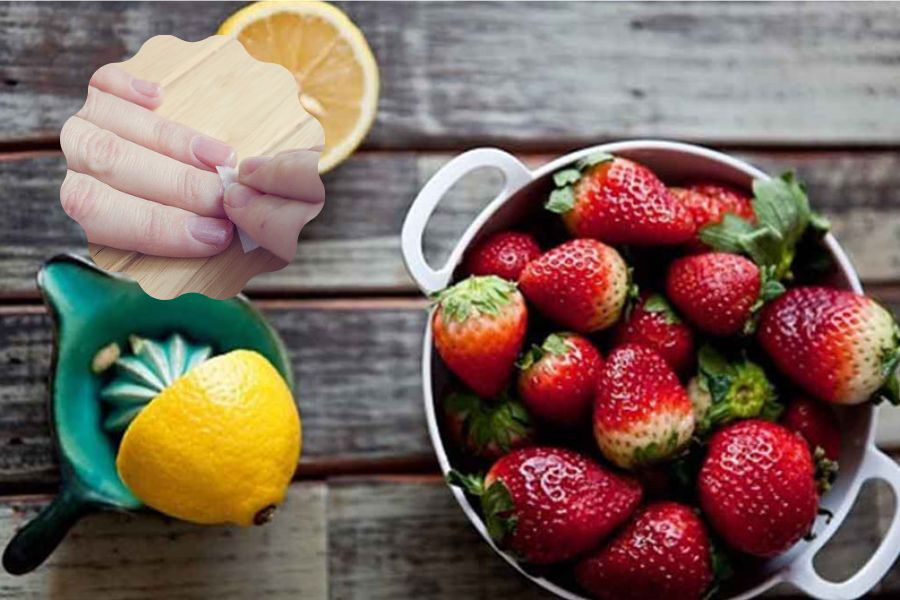 Dâu tây và chanh có chứa một lượng lớn axit tự nhiên, giúp đánh bay lớp sơn móng tay rất nhanh chóng. Ngoài ra, trong 2 loại quả này có chứa vitamin A, C, E… rất cần thiết để nuôi dưỡng móng tay sáng khỏe.