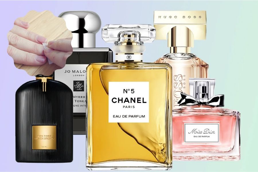 - Bước 1: Bôi hoặc xịt trực tiếp một chút nước hoa lên phần sơn móng tay muốn loại bỏ.