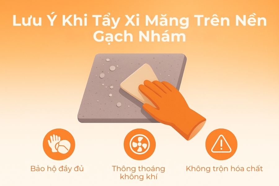 Việc tẩy xi măng trên nền gạch nhám đòi hỏi sự cẩn thận để đảm bảo an toàn cho người thực hiện và bảo vệ bề mặt gạch. Dù bạn chọn phương pháp tự nhiên hay hóa chất chuyên dụng, hãy luôn ghi nhớ những lưu ý quan trọng sau: