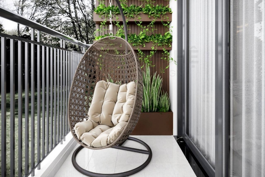 Cách trang trí ban công đẹp với ghế treo ngoài ban công