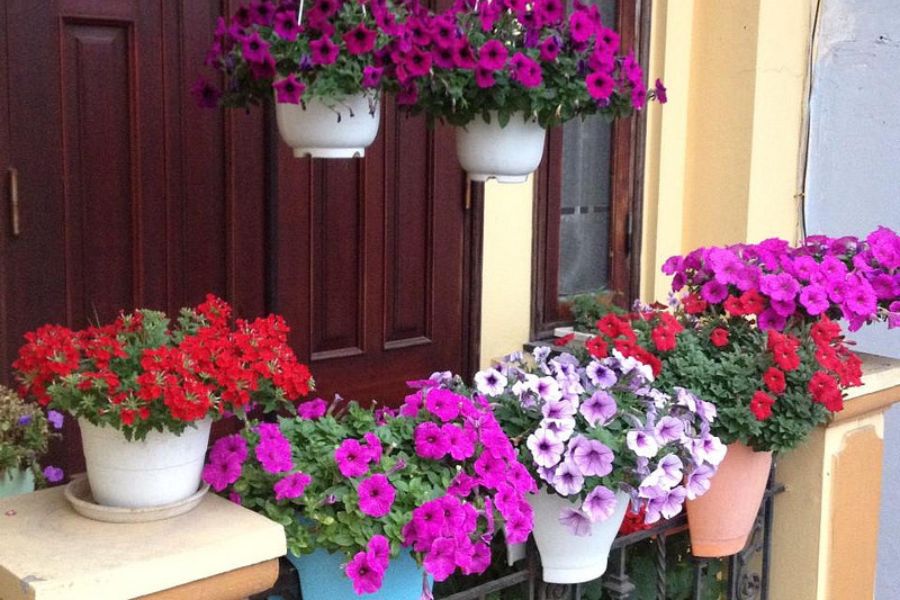 Những loại hoa trang trí ban công với màu sắc bắt mắt, ưa nắng gió và thích hợp với mọi điều kiện sống bạn có thể tham khảo là hoa hồng, hoa giun, hoa giấy, hoa cúc nữ hoàng, hoa cẩm thạch tím,…