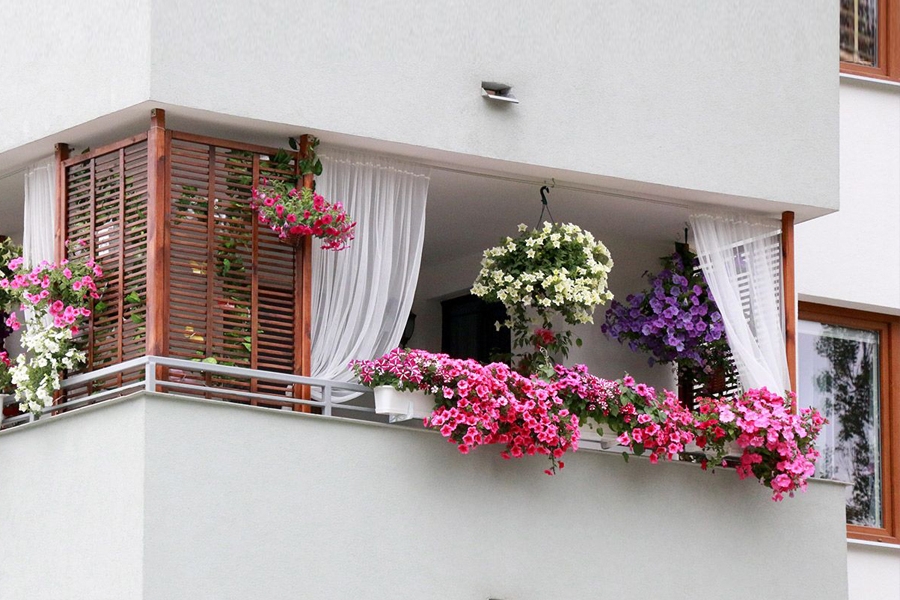 Cách trang trí ban công đẹp với giỏ hoa treo