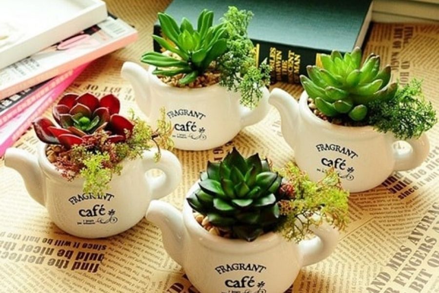 Trang trí bàn học với các chậu cây