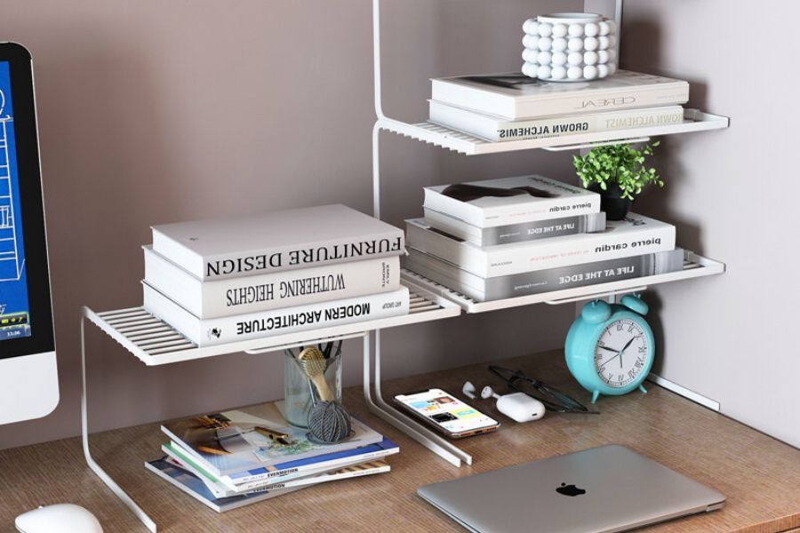 Bên cạnh chức năng là kệ để đồ, bạn cũng có thể tận dụng chúng như một chiếc giá để sách, giá đựng đồ trang điểm hoặc vật dụng cá nhân trên bàn học.