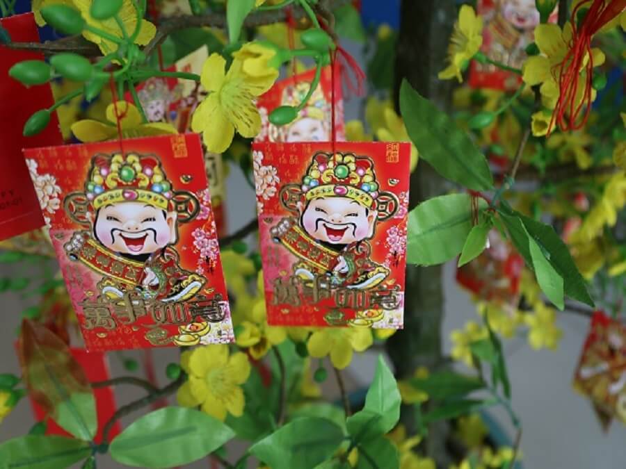 Dùng bao lì xì để trang trí cây lì xì