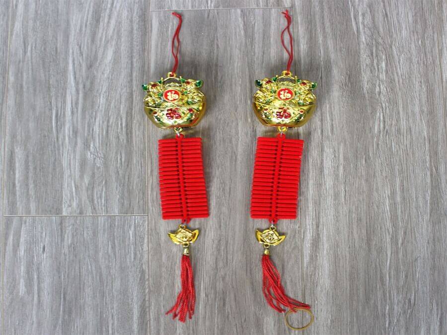 Hai câu thơ này dường như có thể giúp bạn biết được tất tần tật những món không thể thiếu trong ngày Tết cổ truyền của người Việt Nam. Vậy nên khi trang trí cây mai ngày Tết thì không thể nào thiếu được dây pháo cùng câu đối đỏ.