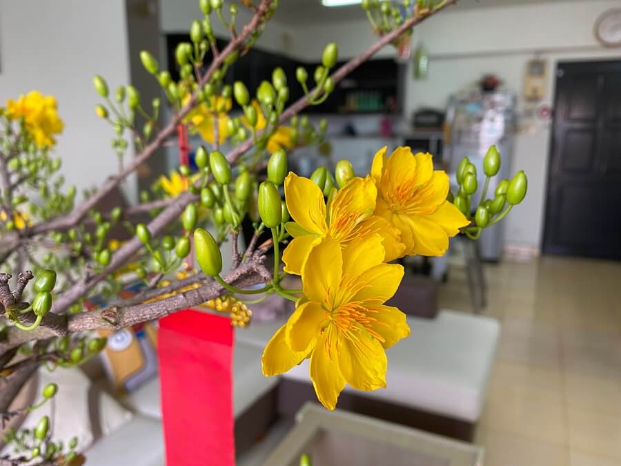Dây pháo đã được bTaskee giới thiệu ở trên rồi, vậy còn câu đối đỏ thì sao? Cây mai nhỏ thế thì treo câu đối đỏ lên thế nào cho phù hợp?
