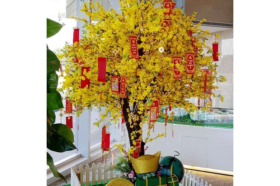 Trang trí cây mai giả giống cây mai thật