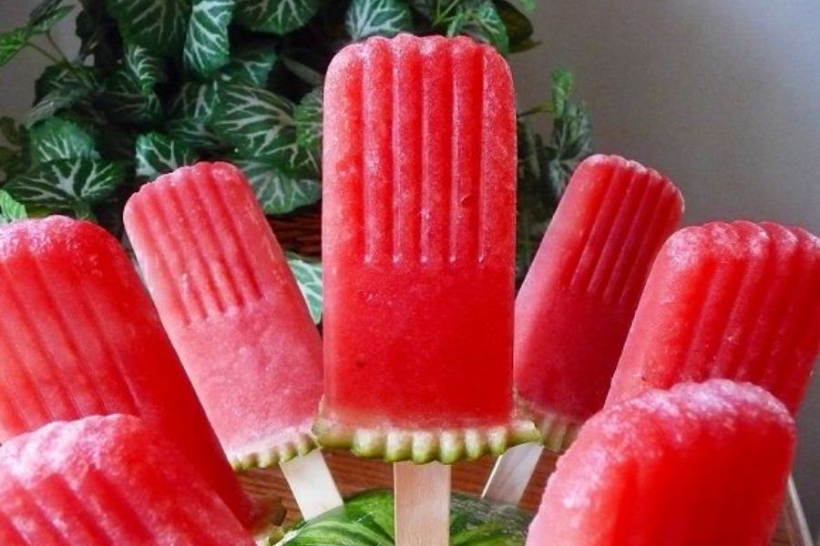 Bày kem que dưa hấu ra đĩa, bỏ tủ lạnh 30 phút – 50 phút trước khi dùng để tạo cảm giác mát lạnh sảng khoái.