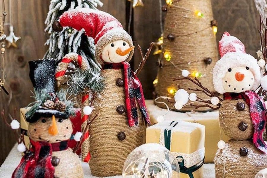 Cách trang trí Noel cửa hàng bằng búp bê người tuyết