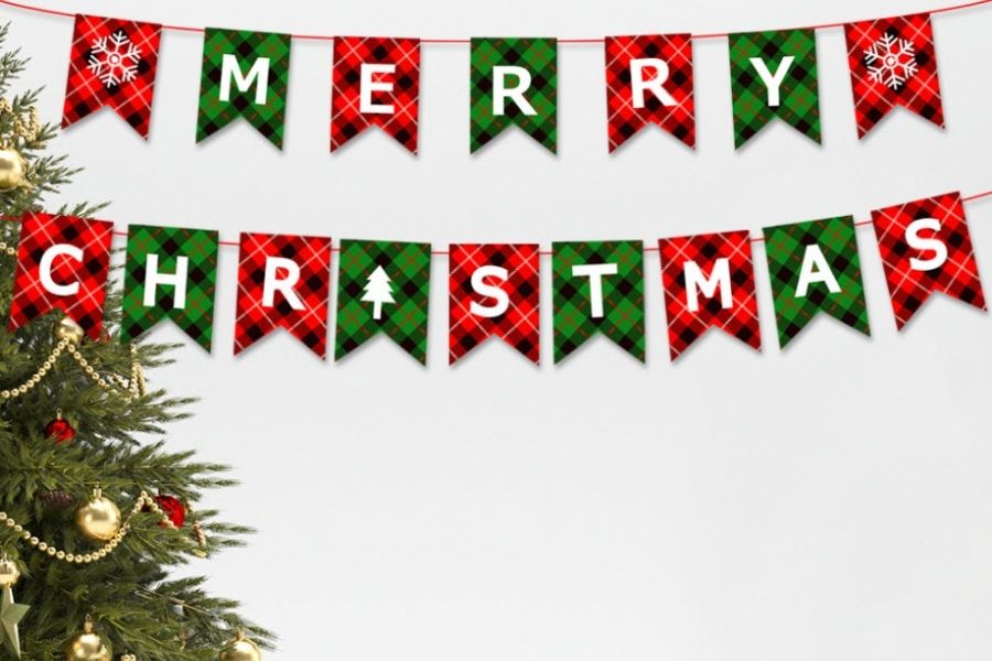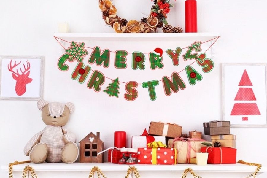 Trang trí bằng những dải chữ Giáng Sinh An Lành (Merry Christmas)