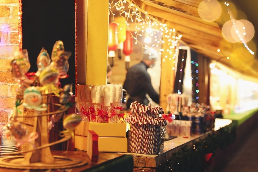 Sử dụng bánh kẹo để decor Noel cho cửa hàng