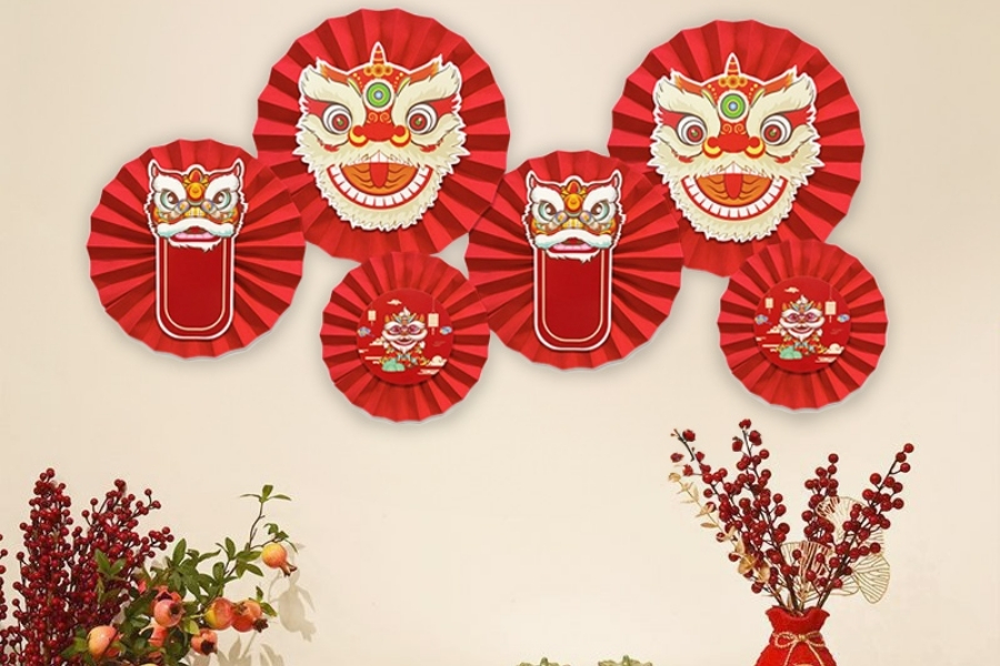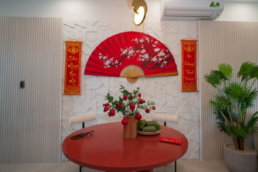 Trang Trí Phòng Khách Ngày Tết Bằng Quạt Nghệ Thuật Treo Tường