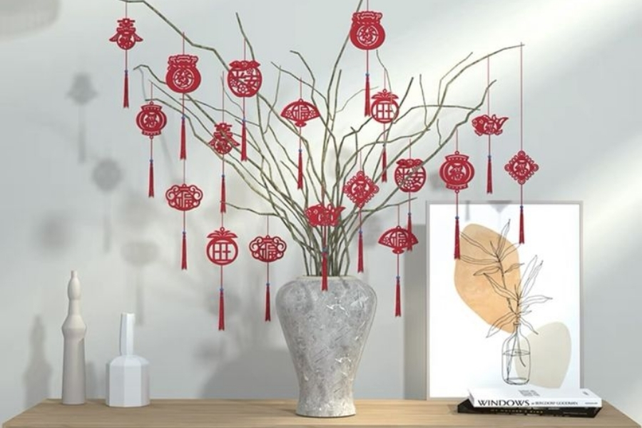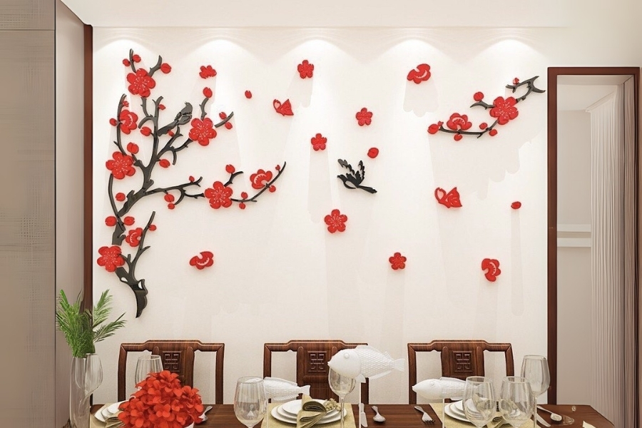 Trang Trí Phòng Khách Với Decal Tết 3D