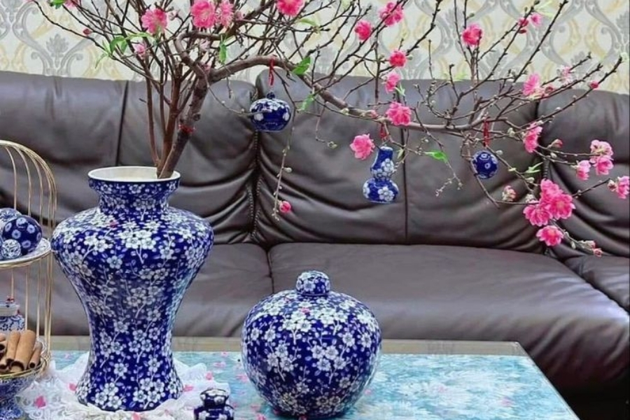 Đồ gốm sứ không chỉ mang giá trị nghệ thuật mà còn giúp không gian phòng khách trở nên tinh tế, ấm cúng và sang trọng hơn trong dịp Tết.