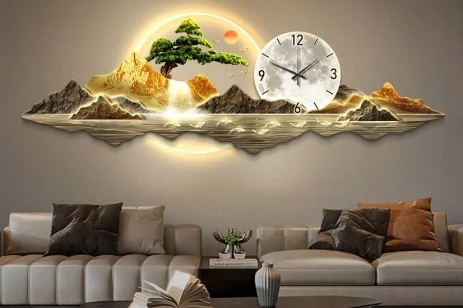 Trang Trí Tường Với Đồng Hồ Điện Tử Kết Hợp Tranh 3D
