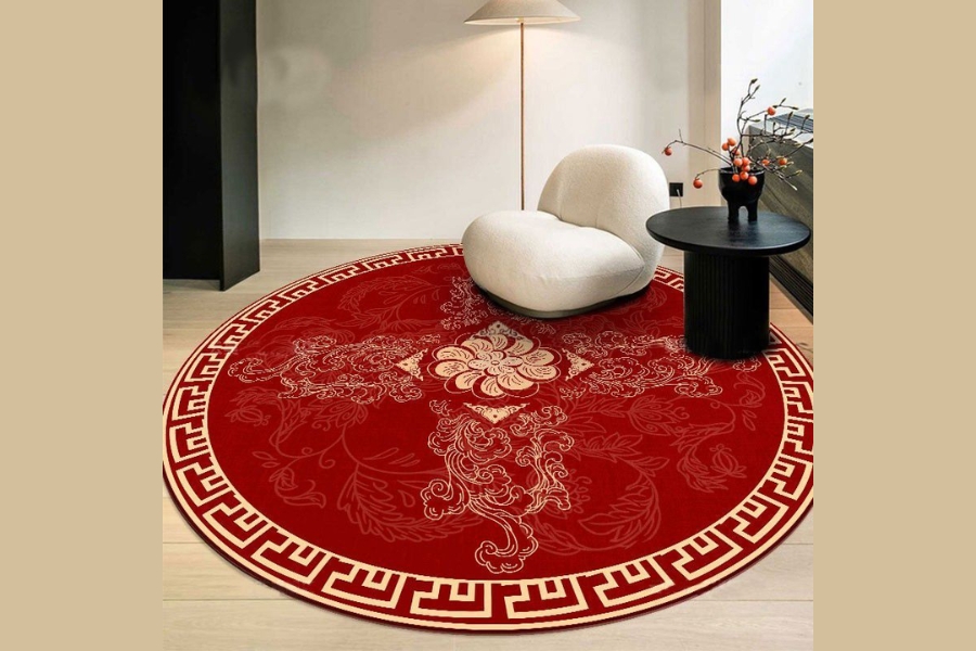 Bạn nên chọn thảm có họa tiết đơn giản, màu sắc hài hòa với tổng thể nội thất để tạo điểm nhấn tinh tế, giúp phòng khách trông ấm cúng và rực rỡ hơn trong dịp Tết.