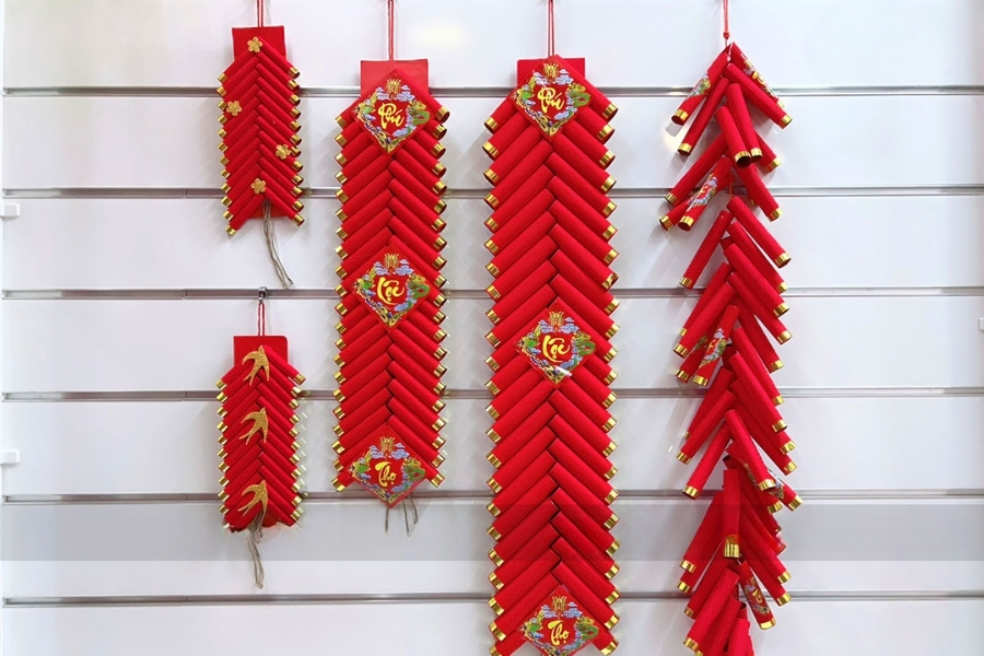 Dây pháo đỏ mang ý nghĩa xua đuổi tà khí, đón may mắn là biểu tượng không thể thiếu trên cửa chính dịp Tết. Màu đỏ tươi rực rỡ của dây pháo không chỉ tạo điểm nhấn cho không gian mà còn thể hiện sự phát đạt, sung túc. Việc trang trí cần đảm bảo tính thẩm mỹ và bền đẹp trong suốt những ngày Tết.