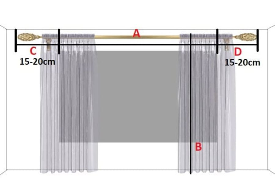 - Việc đo đạc kích thước chuẩn trước khi mua hay may rèm cửa rất quan trọng. Thông thường, rèm cửa thường có chiều rộng gấp đôi chiều rộng của cửa sổ Bởi nó sẽ đảm bảo rèm có thể che phủ được toàn bộ cửa.