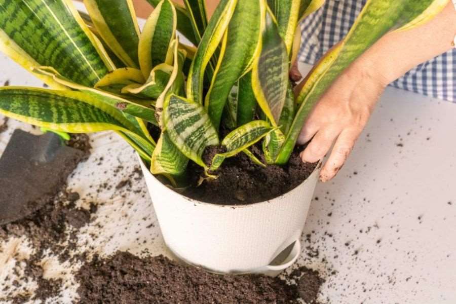 Cây lưỡi hổ dễ dàng bị gặp phải tình trạng ngập úng, thối ở vùng gốc cây, rễ nhũn hoặc lá bị héo rủ xuống. Lúc này, hãy nhấc cây ra khỏi chậu, rửa sạch rễ và thấm khô bằng khăn giấy. Tiếp đến cắt bỏ những phần rễ bị úng, thối hỏng rồi trồng vào chậu đất mới.