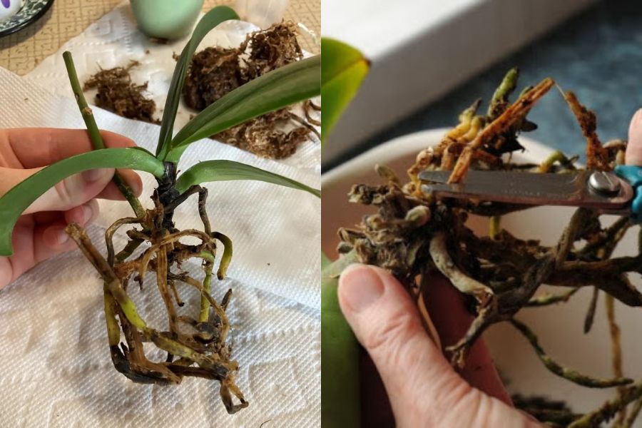 Cắt bỏ những cành, rễ lan bị bệnh sau Tết