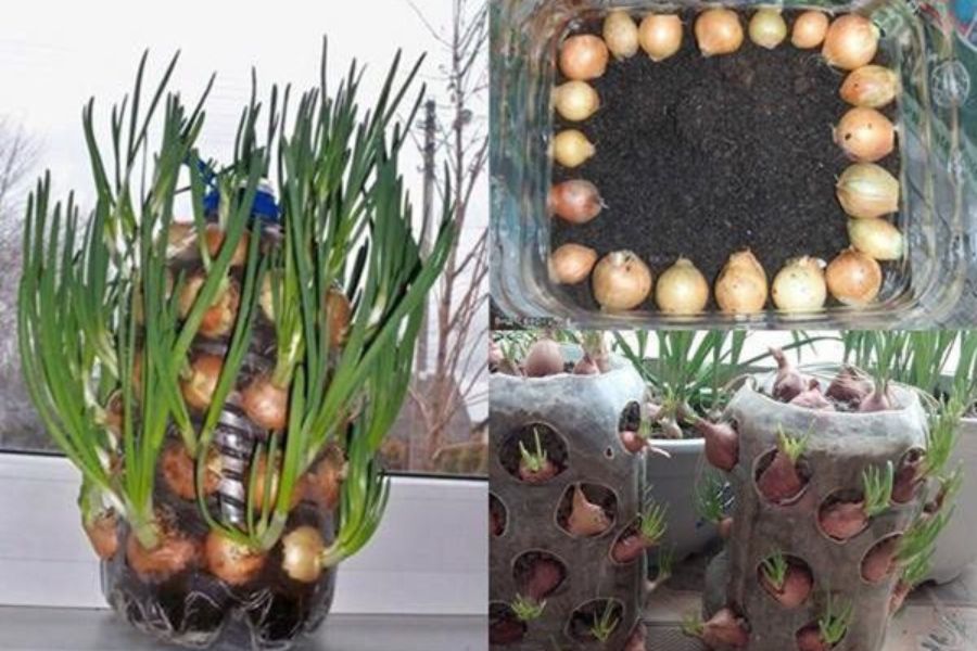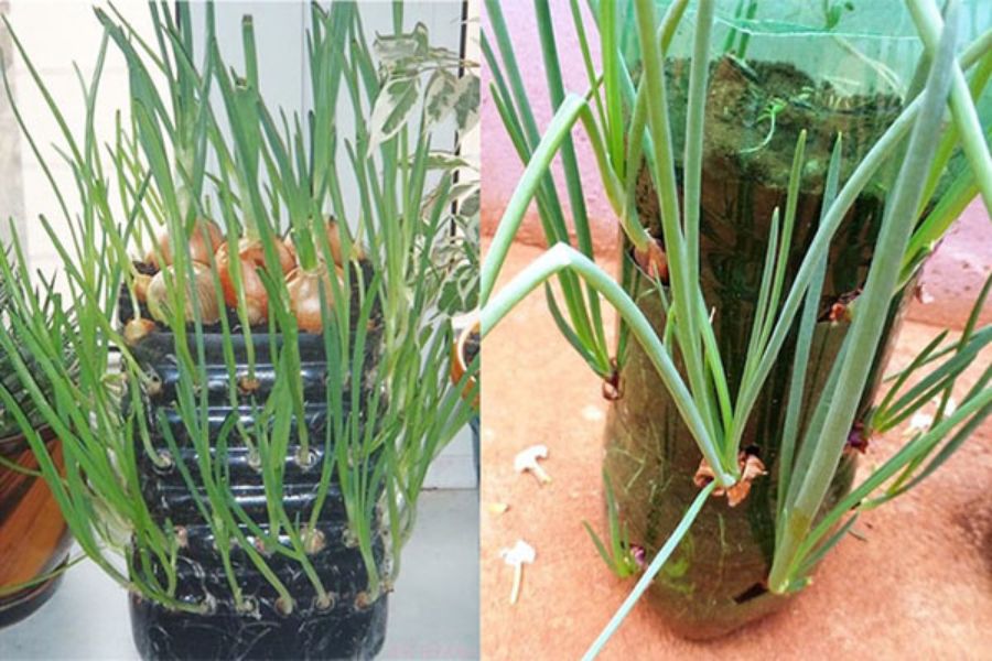 Phương pháp trồng hành lá từ củ hành tím bằng chai nhựa đơn giản