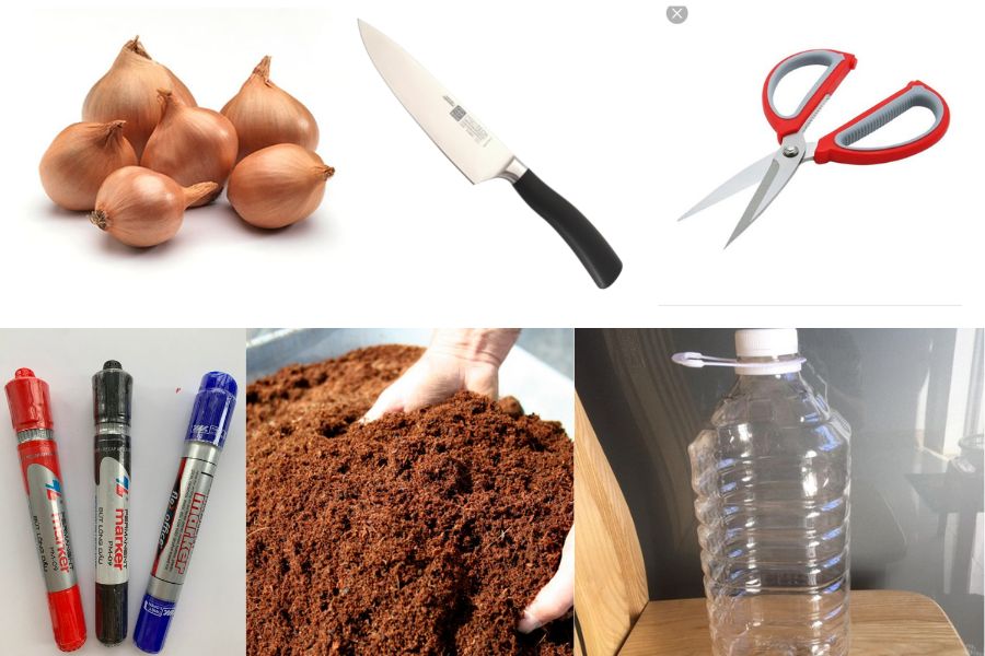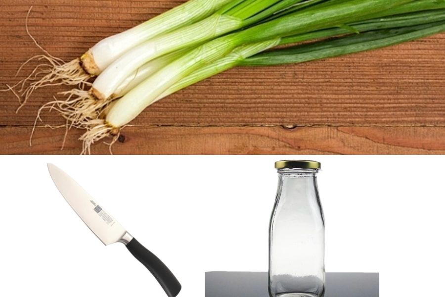 Đầu tiên là cách trồng hành lá bằng chai nhựa với củ hành tím.