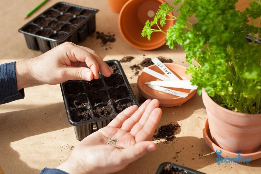 Tại khay ươm giống, bạn đặt vào mỗi ô khoảng 1 – 2 hạt giống và rải đều tại tâm của chậu.