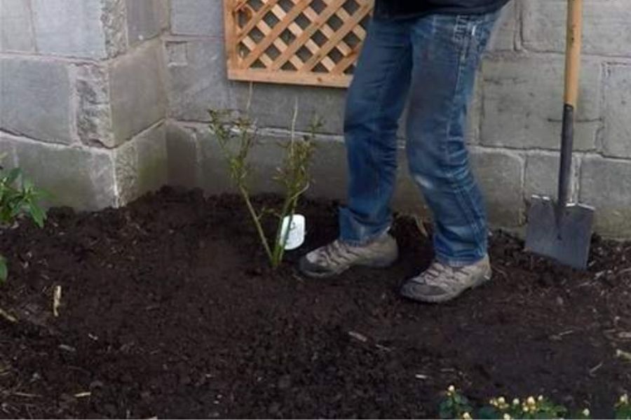 Bước 3: Lắp đất sao cho đất kín bầu của cây hồng leo và cố gắng san đều đất phủ kín mặt bầu, Lưu ý không được nén đất.