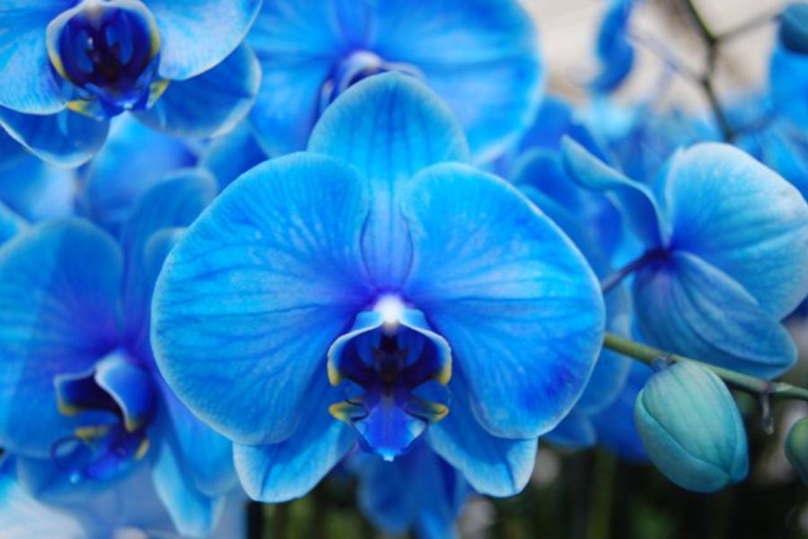 Lan hồ điệp xanh khá hiếm. Mang màu của biển cả, của bầu trời nên lan hồ điệp màu xanh khơi gợi một cảm giác yên bình, bao la. Cũng vì thế mà lan hồ điệp màu xanh sẽ rất thích hợp để tô điểm cho những không gian thanh tịnh, an nhiên.
