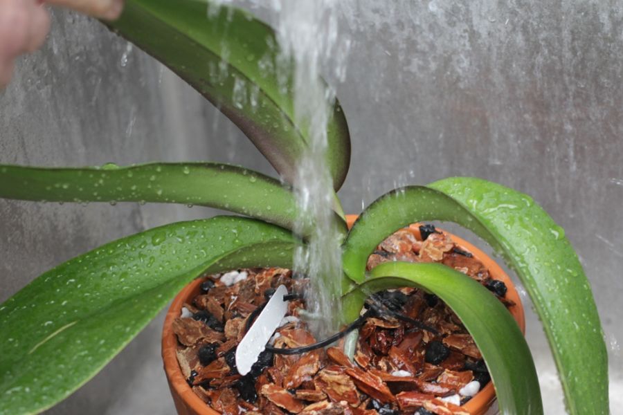 Cây lan hồ điệp con khi mua về cần khử trùng và ngâm bằng nước vài phút để tiệt bỏ mầm bệnh cũng như các vi khuẩn có hại. Sau đó hong khô cây.