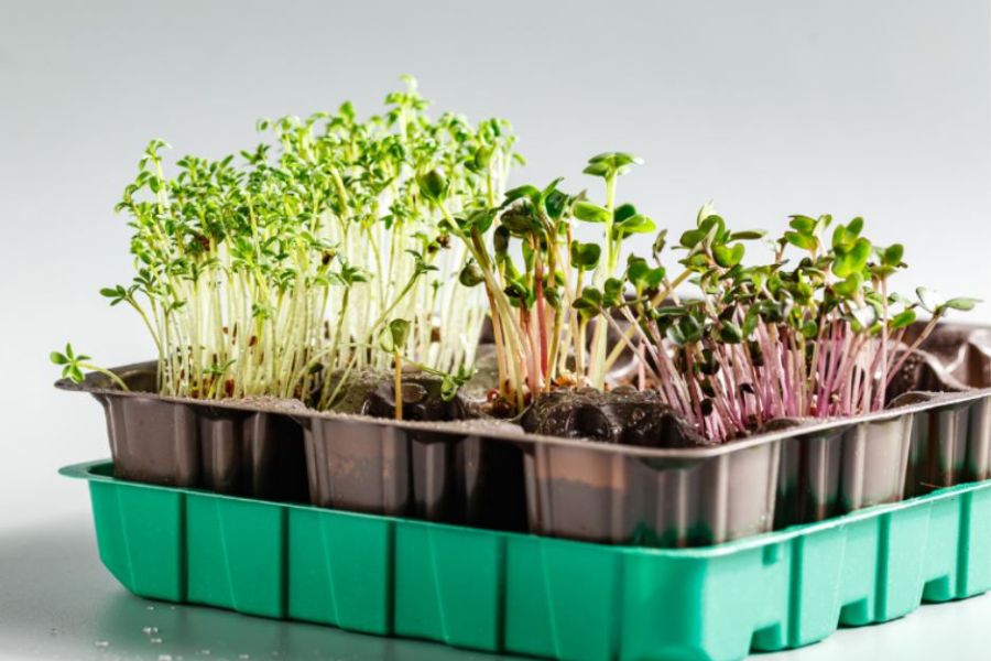 - Nên trồng các loại rau mầm vào chậu nhựa hoặc khay nhựa vì cây trồng thùng xốp rất dễ bị chết do thời tiết.
